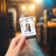 Photo logo white marble black modern employee id badge