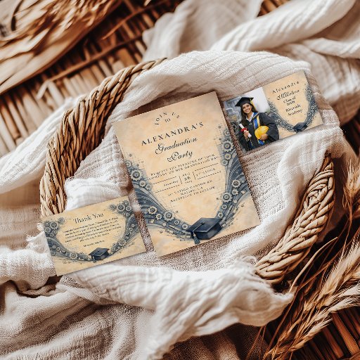 Celebrate a major academic milestone with this refined mechanical engineering graduation design, inspired by technical precision and traditional academic aesthetics. Featuring detailed gear illustrations, mechanical elements, graduation caps, and a warm parchment background, the artwork reflects discipline, problem-solving, and years of focused study.