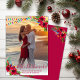 Mele Kalikimaka Christmas Photo Holiday Cards. This modern simple holiday card design feature a burgundy red hand lettered typography greeting „Mele Kalikimaka” , red or burgundy tropical floral arrangements at the two corner and christmas string lights. At the backing floral arrangements on burgundy color background. You can personalize the design by replacing the sample text and the full vertical photo. #3352 If You need help or matching items please contact to me!
