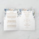 Funeral memorial program featuring on the front a photo of the deceased, thier name, dates, the memorial venue, date of the event, and elegant gold frame with watercolor blue hydrangea flowers. On the inside is an obituary, and order of service; and on the back another photo, a thank you note and the second venue for after the funeral. For further customisation, please click the "Edit using Design Tool" link and use our design tool to modify this template. If you need help or matching items, please contact me.