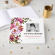 Elegant funeral memorial guest book featuring a classic white and pink background that can be changed to any colour, pretty watercolor flowers, a photo of your loved one, and a "In Loving Memory" template that is easy to personalise.