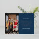 Photo Merry and Bright Blue Silver Christmas Foil Holiday Card. This look is all about minimalism, featuring deep, serene blues reminiscent of crisp winter nights. Imagine simple accents like frosted eucalyptus, delicate snowflakes, and subtle blue ribbons—each detail carefully selected to evoke a sense of calm and quiet elegance. A hint of soft white or silver adds a touch of frosty charm without overwhelming the simplicity of the design. Perfect for those who favour a clean, understated aesthetic, this theme captures the tranquil beauty of the holidays with a refined and sophisticated touch.