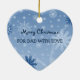 Merry christmas dad ornament customisable with your own family photo in elegant blue and white festive snowflakes pattern. A wonderful christmas gift for dad this holiday season.