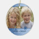 Merry christmas grandma and grandpa ornament customisable with your own family photo in elegant blue and white festive snowflakes pattern. A stylish christmas gift for grandparents this holiday season.