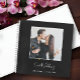 Guests can sign their best wishes, even add instant photos in this elegant spiral bound guest book featuring your favourite photo on the front with an inside border of any colour, we show black, and any background colour, we show black. Your name, date and any other info in chic lettering on the front. CHOOSE THE STYLE PAGES YOU WANT INSIDE!