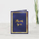 A milestone birthday thank you card with two of your own photos. A stylish dark navy blue background color and a faux gold frame. The blue color is uneven. On front a hand lettered style script and the text: Thank You.