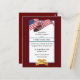 This design features beautiful fully customisable text, beautiful deep burgundy background and flag adorning the top, along with a golden eagle crest at the bottom, which can be fully customisable for text as well.