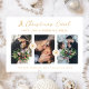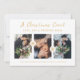 Minimalist Snowflakes Newlyweds First Christmas 3 Photos Collage In Faux Gold Holiday Card with Envelope.