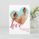 A photo Valentine’s Day cards with a red and white minimalist design. It has a heart cutout for the photo and the word love as part of the overall design. Simply add your photo and text, add as many as you need to your cart, then send out your Valentine’s Day greeting.