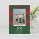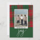 Photo modern berries joy Christmas red green plaid Holiday Card