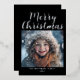Photo Modern Black Merry Christmas Foil Holiday Card. Stunning black Christmas card, customise with your photo and text. Shown in silver foil over black. Foil options include, gold, silver, rose gold. Background colour can be any colour you choose. We invite you to visit our Zazzle store, Life On Memory Lane, for matching products and more. Please contact us if you require any assistance.
