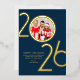 Send warm holiday cheer with a personalised touch in this stunning custom photo holiday card for 2026. Perfect for friends, family, and loved ones, this one-sided card features a stylish circular frame where you can display your favourite photo, making your greetings feel truly personal. Bold "2026" gold foil numbers sparkle against an elegant navy blue customisable colour background, adding an elegant, festive flair that’s both modern and timeless. Effortlessly customise with your heartfelt message, and choose from luxurious foil options in gold, rose gold, or silver to suit your style. This easy-to-edit online template helps you create a holiday card that’s polished, unique, and memorable for all who receive it.