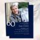 Photo modern minimalist navy blue 60th birthday party invitation for a fun birthday party. Age can be changed. This invitation is simple and elegant, adult milestone birthday invitation for men and women. The navy blue background colour can be changed to any colour of your choice using the design tool.