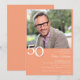 Photo modern minimalist peach 50th birthday party invitation for a fun birthday party. Age can be changed. This invitation is simple and elegant, adult milestone birthday invitation for men and women. The peach background colour can be changed to any colour of your choice using the design tool.