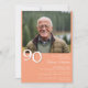 Photo modern minimalist peach 90th birthday party invitation for a fun birthday party. Age can be changed. This invitation is simple and elegant, adult milestone birthday invitation for men and women. The peach background colour can be changed to any colour of your choice using the design tool.