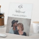 A chic white background. Personalise and add your photo, monogram initials, names.