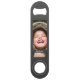 2 photo & name double sided personalised stainless keychain bottle opener bar blade with rounded a grey border.