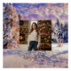 A Winter Christmas Scenery with winter snowed trees, Christmas trees full of snow, and lots of snow, in pastel colors watercolor painting, purple, white, pink, golden, green and gray with customizable name, and most importantly, customizable photo