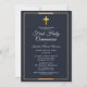 Celebrate your child’s First Holy Communion with this elegant Navy Blue and Gold Photo Invitation. Featuring a minimalist design with a stunning photo of the celebrant, this invitation adds a personal touch to this important milestone. Perfect for creating a memorable announcement for the upcoming ceremony and celebration.