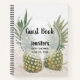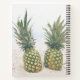 Spiral notebook with a photograph featuring a pair of pineapples sitting on a sandy beach.