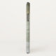A phone case with a peaceful photograph featuring a beautiful white horse. A magical winter snowfall gives the image a wonderful mystical quality.