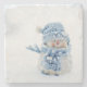A stone coaster with a cute photograph of a little snowman. Standing outside in the winter with snow falling all around. This cute little guy is dressed up in blue knitted hat and scarf.