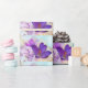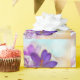 Wrapping paper with a lovely photograph of a dark purple crocus set inside a glass jar.