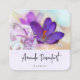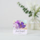 Business cards with a lovely photograph of a dark purple crocus set inside a glass jar. A light purple blossom is present in the background.