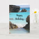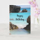 Birthday card with a scenic photograph featuring Bermuda's tropical coast. Big jagged rocks contrast with the bright turquoise sea.
