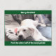 Photo of Cute White Lazy Dog With Dad Green Holiday Postcard