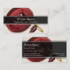 The business card has been created from a photo of a Red button with needle and thread