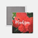 This magnet features a photo of a bright orange double hibiscus flower and a beautiful fancy script to customise the name.