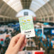Personalised name tag with a fresh and summery photograph featuring a collection of wild daisies with big yellow centres growing in a green field.