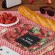 Paper plates with a colourful photograph featuring a bunch of luscious red strawberries.