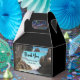 A tiny favour box with a scenic photograph featuring Bermuda's tropical coast. Big jagged rocks contrast with the bright turquoise sea.