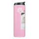 Photo of Unique Cute White Dog Monogram Pink Paws Thermal Tumbler