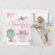 Pink Girl's ONEderful World Photo 1st Birthday perfect for her first birthday. Add photo and birthday party details to this adventure travel themed wonderful world design.
