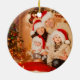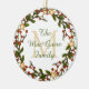 Vintage elegant family photo Christmas wreath with berries and stars monogram initial frosting rounds to use for family or small business holiday gifts and party favors.