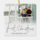 Photo Overlay Name Date First Christmas New Home, To commemorate your 1st holiday season in your new home, with set stylish script for first Christmas, easily personalise the rest of the text.. Choose your favourite photo to replace the sample picture. Changes to colours of text can be made to better suit your photo if necessary via the customise further option. The same design is also on the back and will update simultaneously.