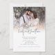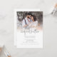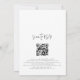 Photo Overlay Informal Script QR Code Wedding Evening Party. A fully customiseable design available digitally and printed. Change text as required and replace the sample photo with your own favourite. With a QR code to your wedding website on the back so your guests can easily visit your wedding website to RSVP and see more details. Your QR code will be automatically generated to update the sample code in the design, when you simply change the sample URL in the template with your own wedding website URL