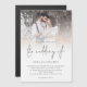 Modern Photo Overlay Script Magnet Wedding Invitation. An informal set typography in black for the main heading the Wedding Of complementing the rest of the text which you can easily personalise. Replace the sample photo with your own favourite.