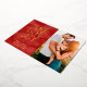 Celebrate the holidays with this stunning holiday card featuring the words Peace Love & Joy in pressed gold foil on a red bokeh background. These Holiday cards are perfect to send to friends, family and coworkers!