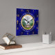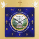Church or Pastor's Photo Personalised, Christian Gifts for Pastors. Beautiful, Christian Wall Clocks or TRANSFER to THOUSANDS of other Personalised gifts for pastors and wife to celebrate church anniversary or for pastor anniversary gifts. Wonderful pastor retirement gift too. Shades of blues with a touch of gold glitter look design to nicely set off Pastor's Photo or Your Church picture or Logo. You can DELETE the Photo to Expose a large golden Cross.