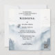 A dreamy winter wedding invitation featuring a watercolor mountain landscape scene with pine trees and some hazy fog. An optional QR code template is added for your convenience. On the back is your own custom photo.