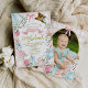 Sweet Alice in onederland themed first birthday invitation featuring a pink diamond pattern, pink bow and banner, various items form the story and a photo on the back. This onederland 1st birthday invitation also features a decorative faux gold calligraphy heading and a small heart.