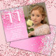 Photo Pink Glitter 11th Birthday Invitation Girly Pink Glitter 11th birthday party invitation for a 11 year old girl with modern script writing and fun foil balloons.