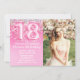 Photo Pink Glitter 18th Birthday Invitation Girly Pink Glitter 18th birthday party invitation for a 18 year old girl with modern script writing and fun foil balloons.