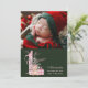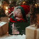 Celebrate your baby girl’s very first Christmas with this heartwarming holiday photo card! Featuring a soft watercolor teddy bear, festive pink gifts, a pastel tree, and space to highlight your newborn’s name, birth date, weight, and height — this card is the perfect keepsake for proud new parents. The rich forest green background and cosy photo layout make it both classic and charming. A must-have for sentimental moms and holiday magic lovers.