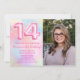 Photo Pink Rainbow 14th Birthday Invitation Girly Pink Glitter 14th birthday party invitation for a 14 year old girl with modern script writing and fun foil balloons.