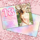 Photo Pink Rainbow 18th Birthday Invitation Girly Pink Glitter 18th birthday party invitation for a 18 year old girl with modern script writing and fun foil balloons.